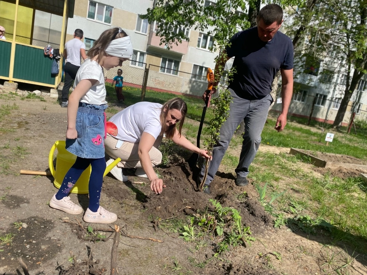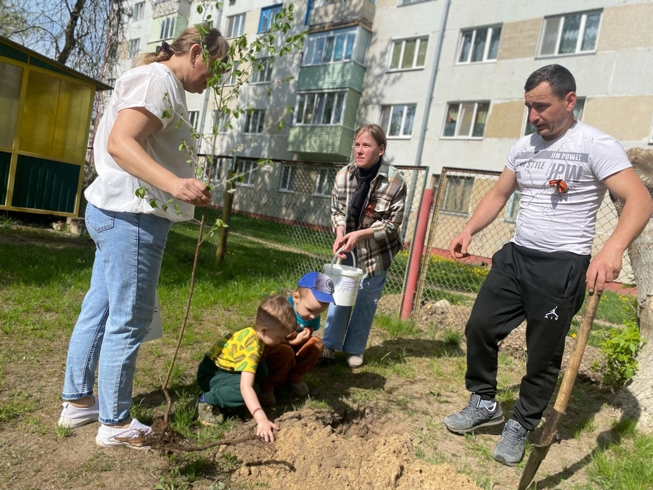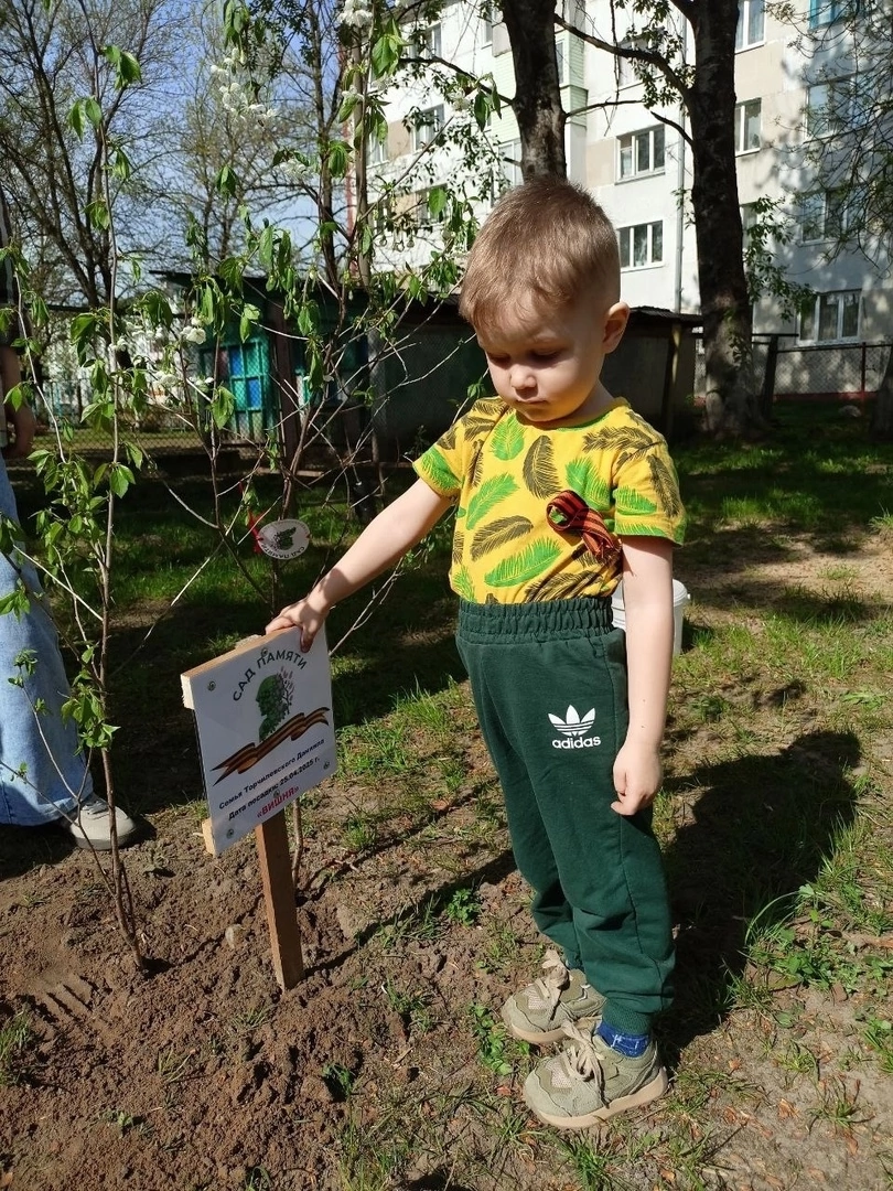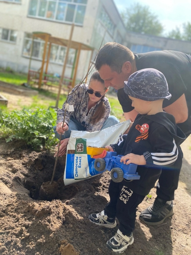 Дети, родители и сотрудники детского сада приняли участие в Международной акции "Сад Памяти". Целью акции является высадка 27 миллионов деревьев в память о каждом погибшем в Великой Отечественной войне.