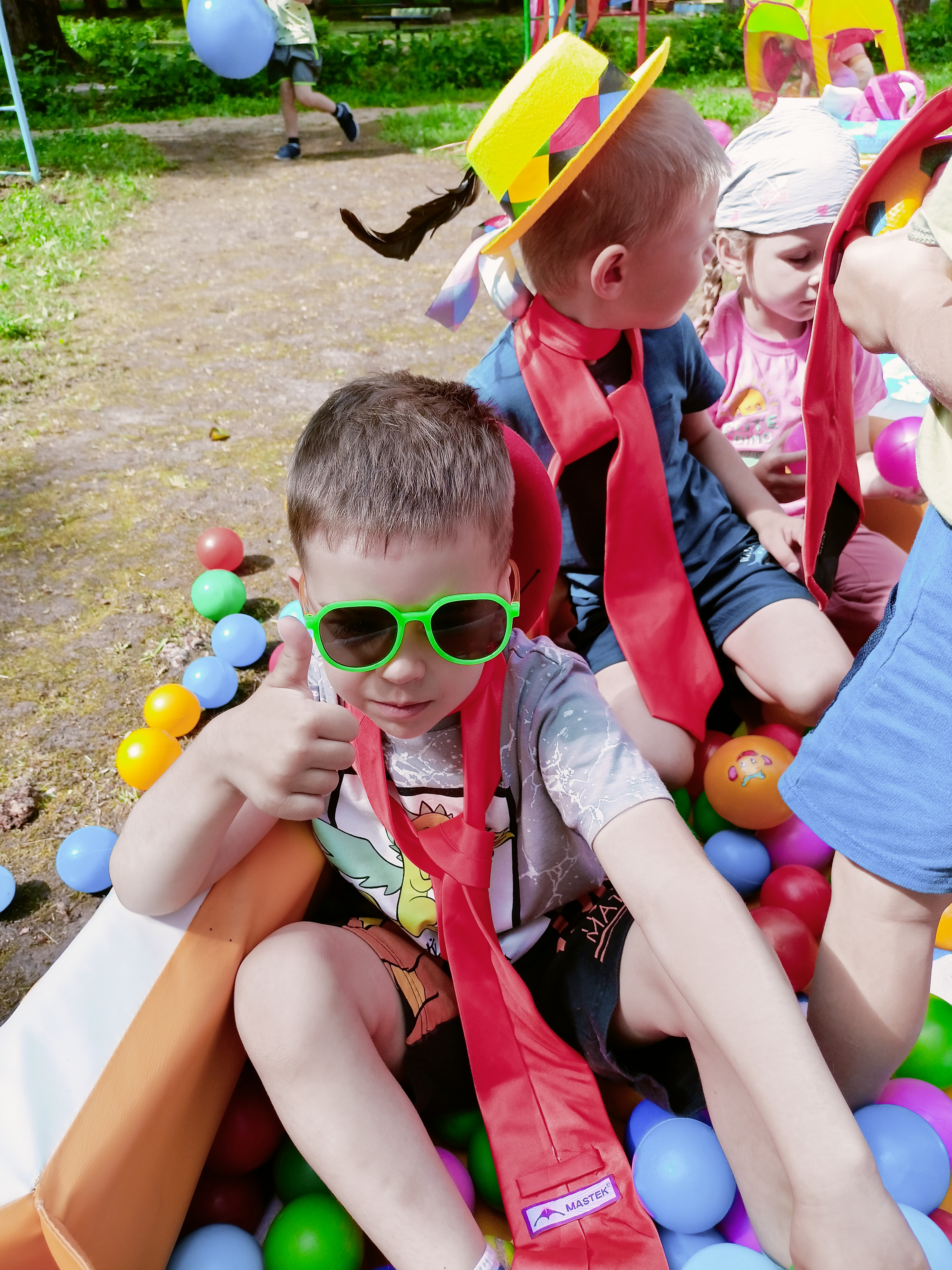 - Купались в сухом бассейне, наполненном разноцветными шариками