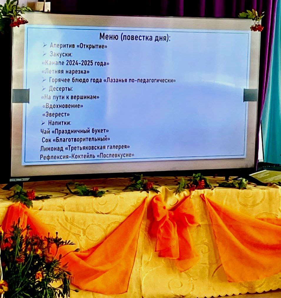 На пороге новый учебный год, новые задачи, новые возможности, новые проекты. И где как ни на установочном педагогическом совете все это можно обсудить. Именно там. В дошкольном учреждении 28 "Елочка" такое заседание прошло 27 августа в формате "Педагогического кафе" . Собрались гости: педагоги, социальные партнёры и члены родительской общественности. Управляющий кафе - заведующий Савенок И.В. всех пригласила к столу. В меню этого дня был и музыкальный аперетив, лазанья по - педагогически, новое блюдо 2025- 2026 года и фирменное угощение от шеф- повара , старшего воспитателя Бардадын В.В. Знакомство с новыми задачами годового плана, утвержденными приказами Министерства просвещения, локальными актами учреждения все это было в меню этого дня. Члены родительской общественности высоко оценили летнюю оздоровительную работу коллектива. Заведующий выразил благодарность родителям и партнёрам за активное сотрудничество. "С уверенностью можно сказать"- говорит член родительского комитета Федосова Екатерина, что коллектив справится с новыми, поставленными перед собой задачами. А впереди новый учебный год. Пусть для всех педагогов страны он будет ярким, удачным и запоминающимся.